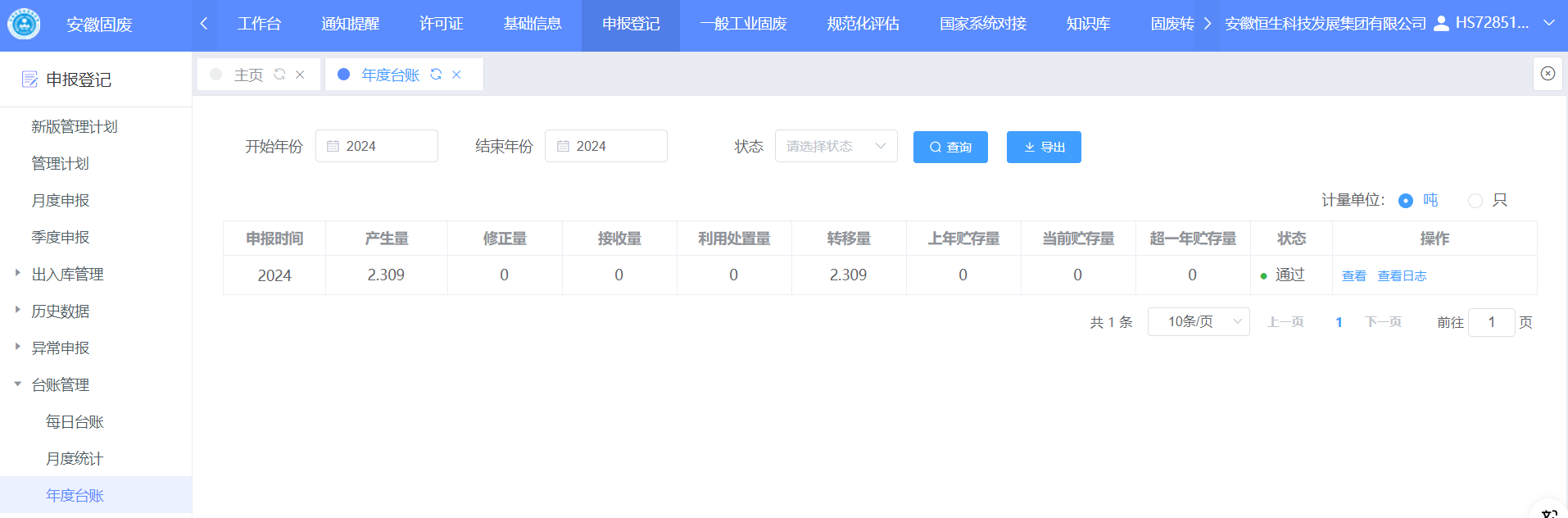 2024年安徽恒生科技發(fā)展集團有限公司 危險廢物產(chǎn)生概況