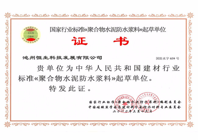 行業(yè)標(biāo)準(zhǔn)起草證書